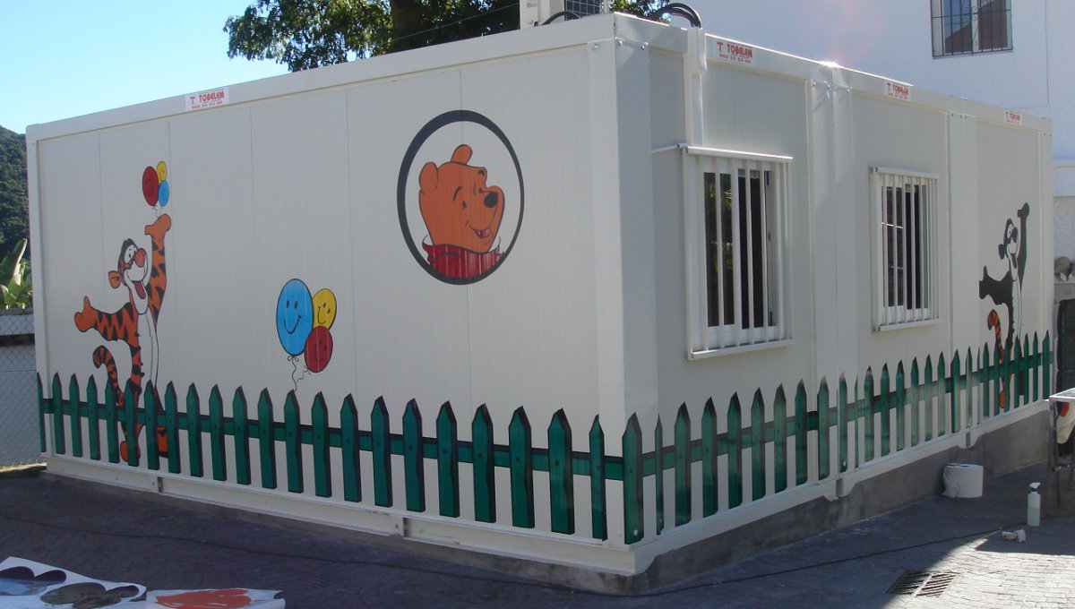 Construida usando 2 módulos de 7x4,70 sobre estructura metálica.
